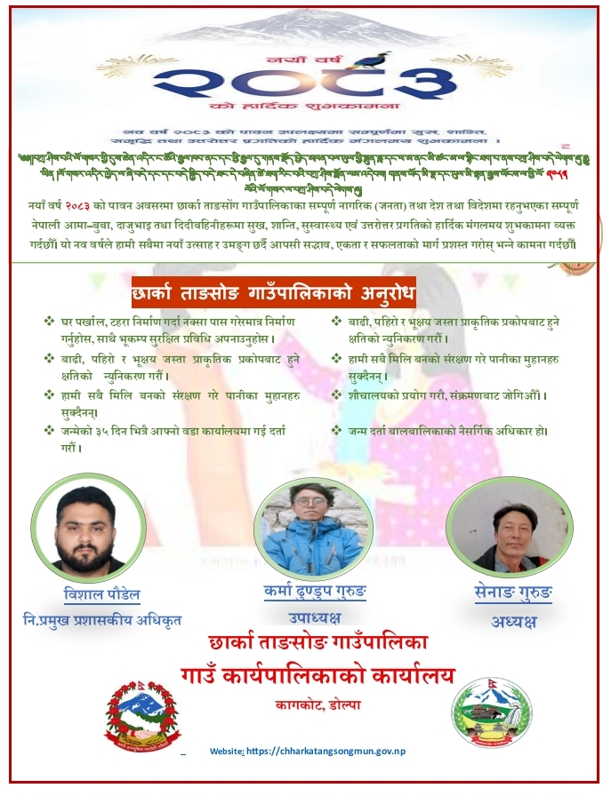 "पशुपालन,जडिबुटी,पर्यटन र जलस्रोत छार्का ताङसोङको आधार:सुशासन,समृध्दि,मौलिकता र आधुनिक पूर्वाधार''