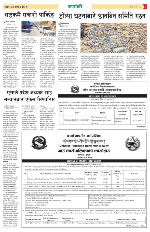 » छार्का ताङसोङ गाउँपालिकाद्वारा, इलेक्ट्रोनिक बोलपत्र आह्वान २