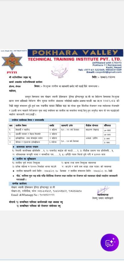 तालिम कार्यक्रममा सहभागिता जनाउन इच्छुक व्यक्तिहरूले कृपया हामीलाई सम्पर्क गर्नुहुन हार्दिक अनुरोध