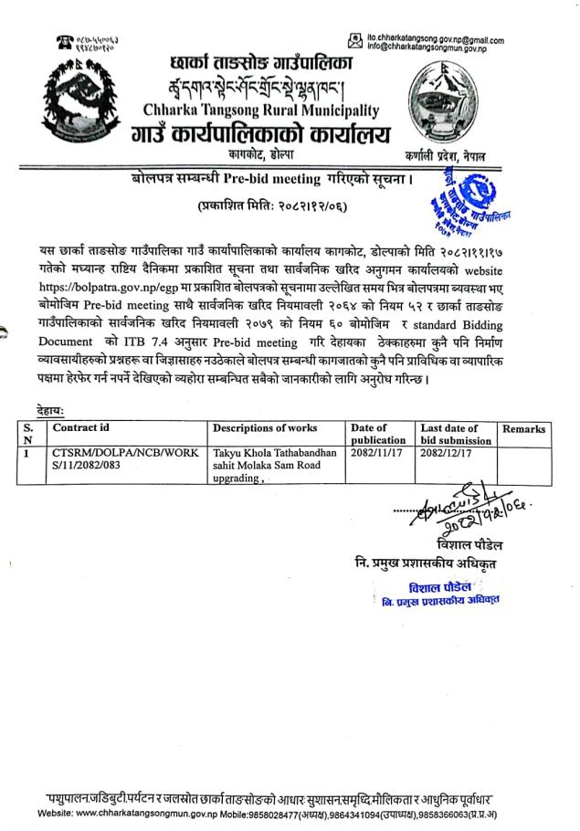 बोलपत्र सम्बन्धी Pre-bid meeting गरिएको सूचना ।