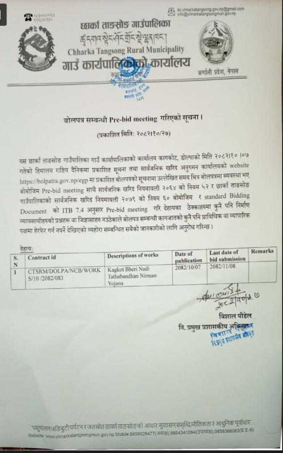 बोलपत्र सम्बन्धी pre-bid meeting आह्वान गरिएको सूचना