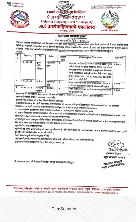 सेवा करार सम्बन्धी सूचना (प्रथम पटक प्रकाशित मिति: २०८२/०५/०५)