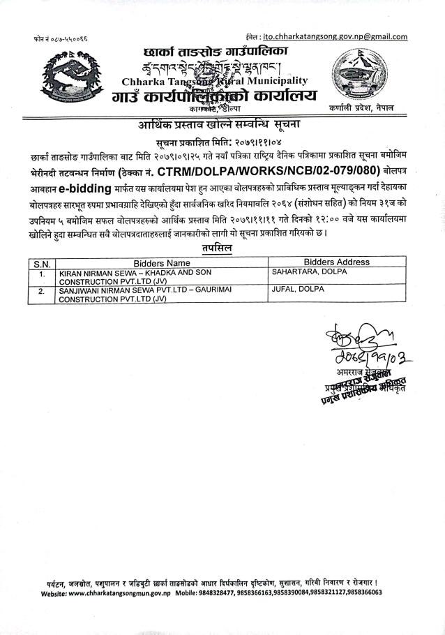 » आर्थिक प्रस्ताव खोल्ने सम्वन्धि सूचना ।